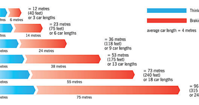 Stopping distance is determined by more than just speed and in truth, there are many factors that influence the stopping distance of a vehicle. They can broadly be put into three categories: driver awareness, vehicle condition and environmental factors. We take a look at each in more detail below:
